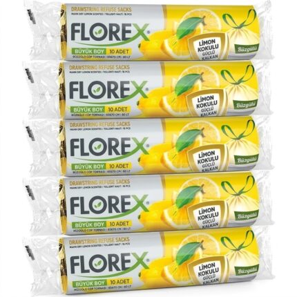 Florex Limon Aromalı Büzgülü Çöp Torbası – Büyük Boy (65×70) 10 Paket